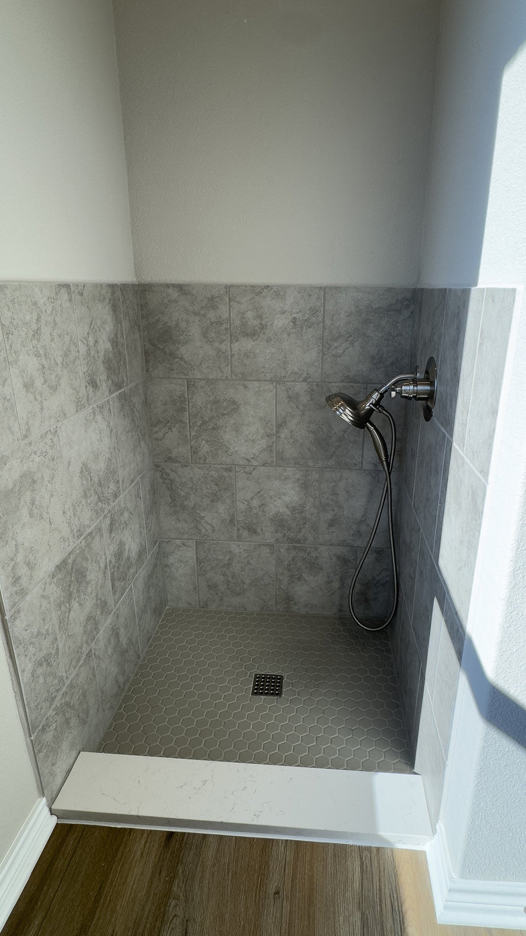 One of the home’s most thoughtful features is the custom dog shower incorporated into the laundry room. Designed with this family's furry members in mind, this addition makes bath time a breeze. The shower includes tiled walls and an adjustable handheld sprayer to ensure comfort for both pets and their owners. With its practical yet stylish design, the dog shower is a wonderful touch that showcases the care and attention to detail this family put into their home. It’s the perfect spot for muddy paws or quick clean-ups after outdoor adventures on their land.